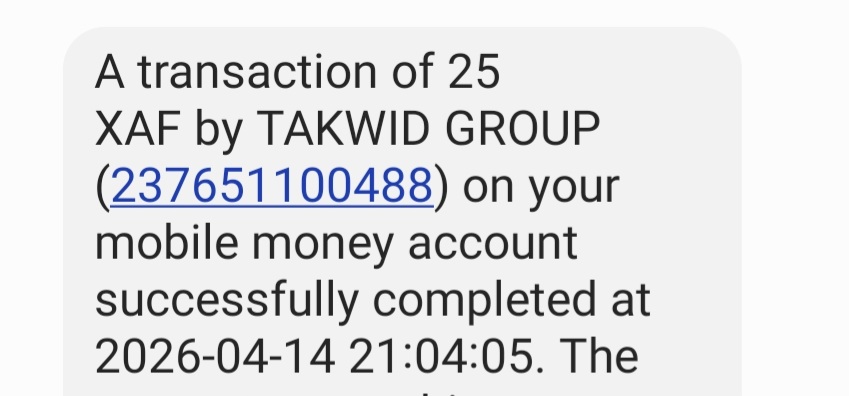 MTN MoMo Text Confirmation — Cameroon (WAT, UTC+1)